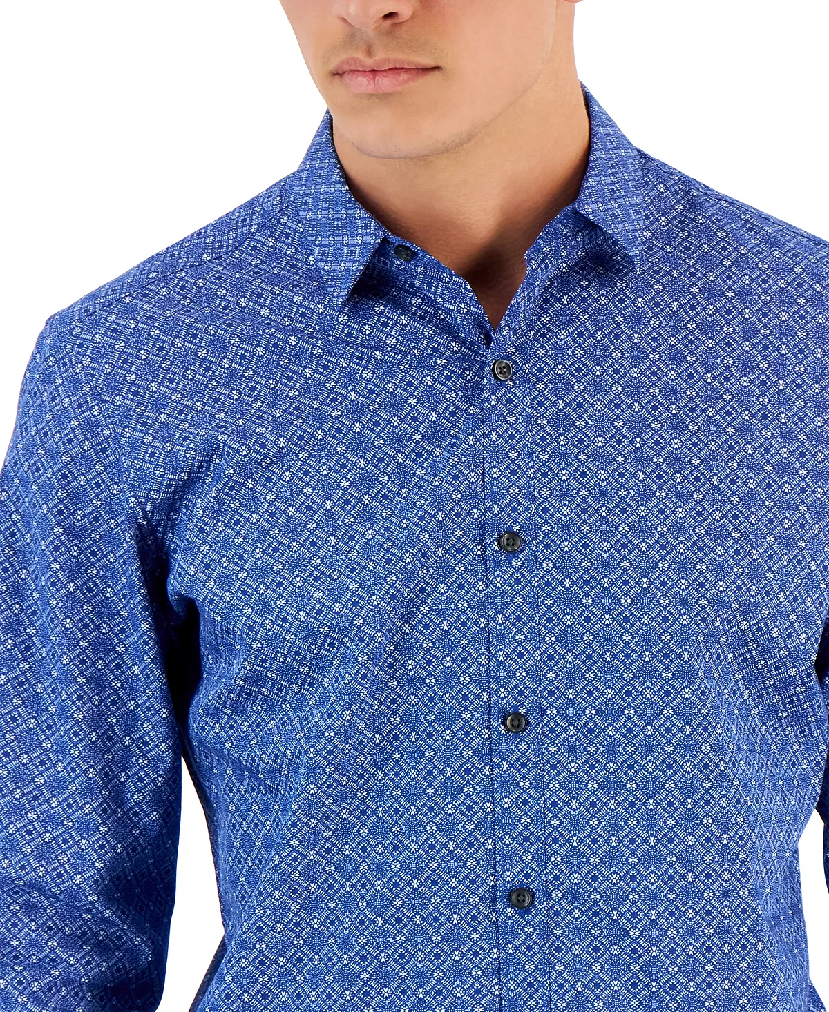 A well-put together look begins and ends with this Bobba Foulard print shirt from Alfani, featuring a point collar and a classic fit.