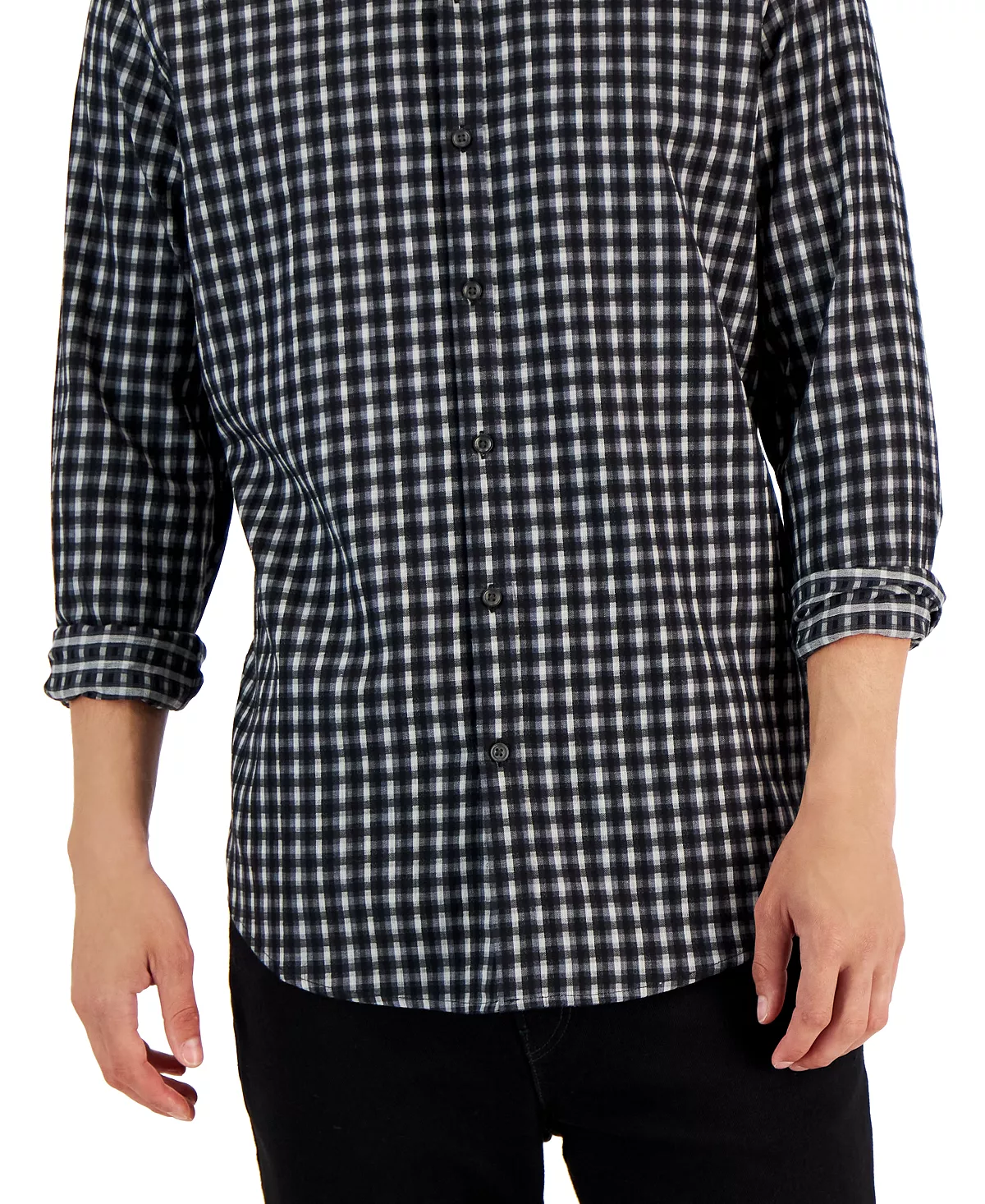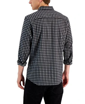 Alfani adds the ultimate upgrade to your casually cool look with the classic button-down styling and check print of this shirt.