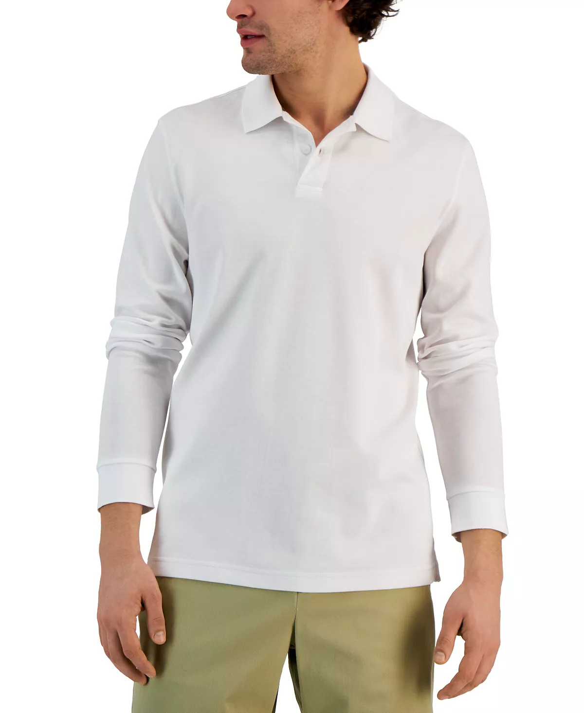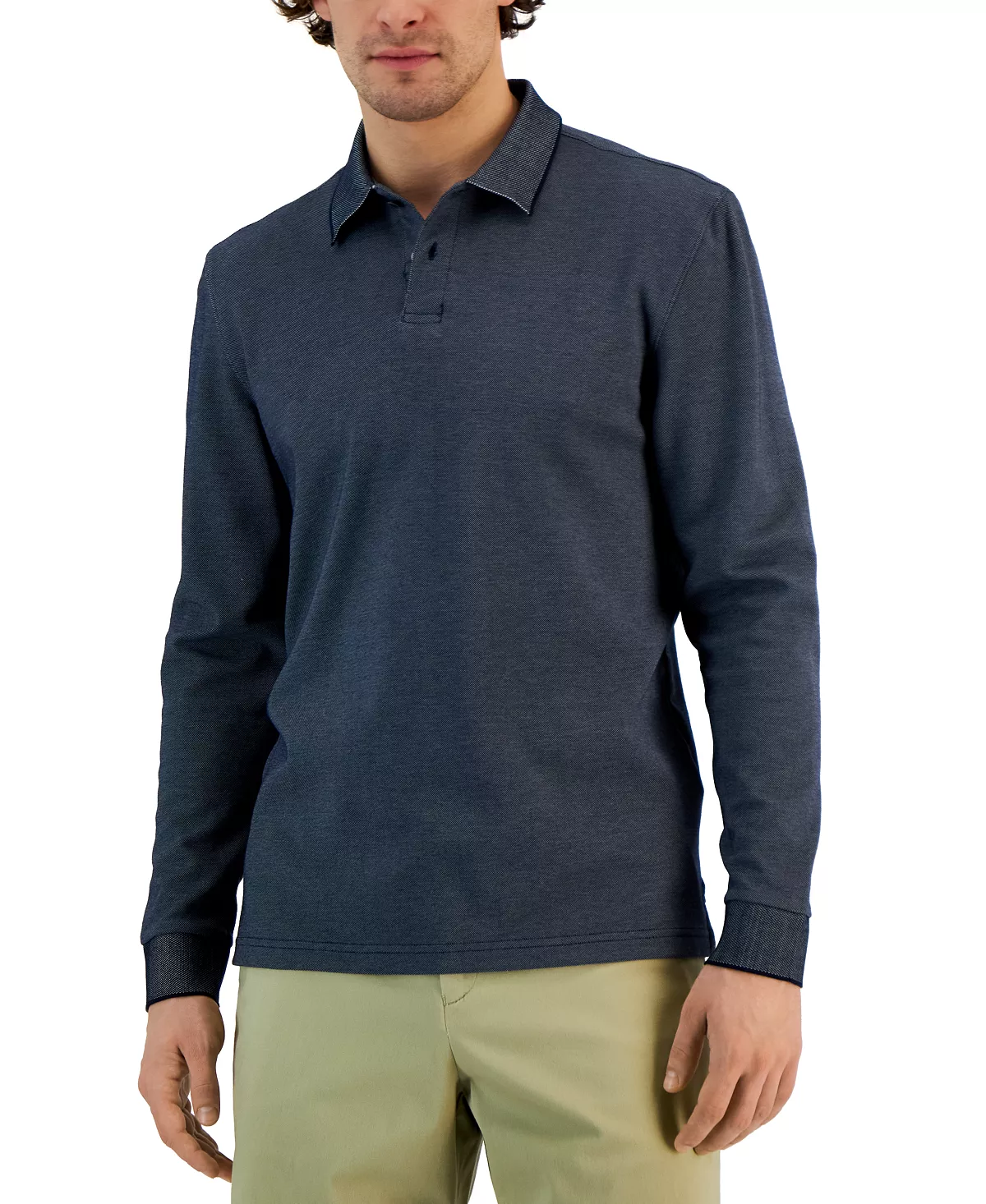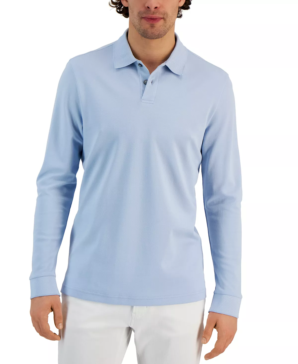 The perfect choice for transitional weather, this polo shirt from Alfani helps keep you comfortable with its classic fit and long sleeves.