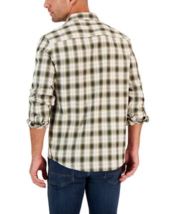 Update your look with the eye-catching plaid print adorning this long-sleeve, all-cotton shirt from Alfani.