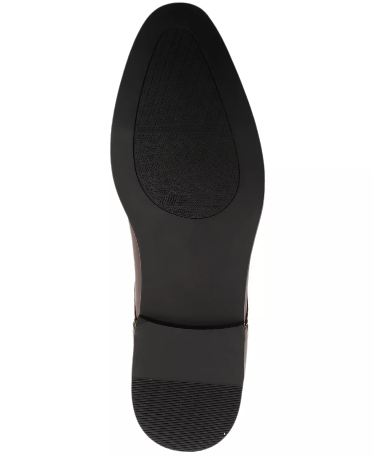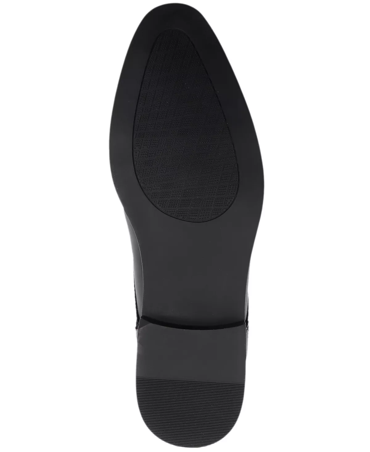 Give your professional look a modern makeover with the sleek faux leather and stylish textured detailing of these cap-toe dress shoes from Alfani.