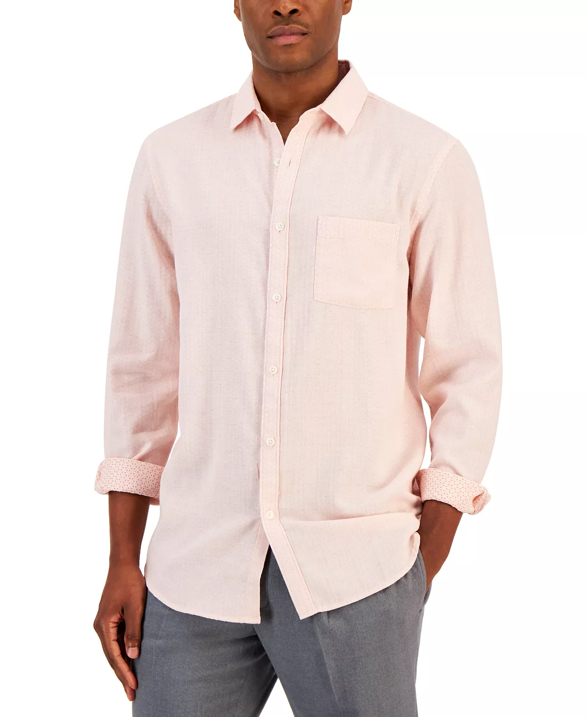 In pure, soft cotton for optimal comfort, this long-sleeve shirt from Alfani features an allover chevron pattern and a convenient chest pocket.