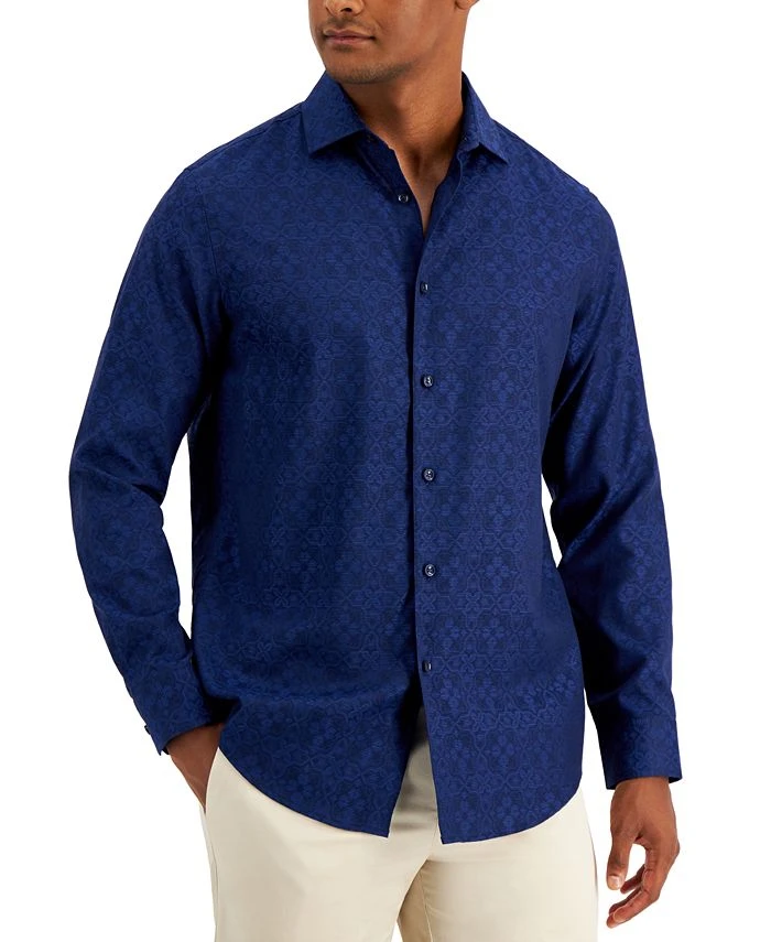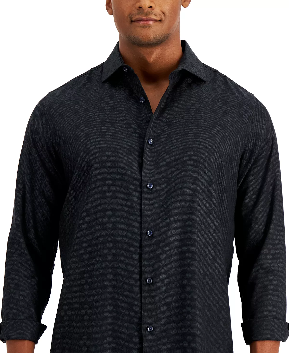 Give your casual look a fresh modern feel with the bold medallions printed on this soft cotton shirt from Alfani.