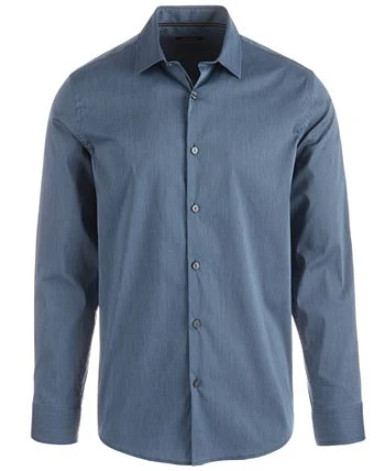 Alfani takes your business-casual look up a notch with the modern sheen and subtle striped pattern of this all-cotton button-down shirt with long sleeves.