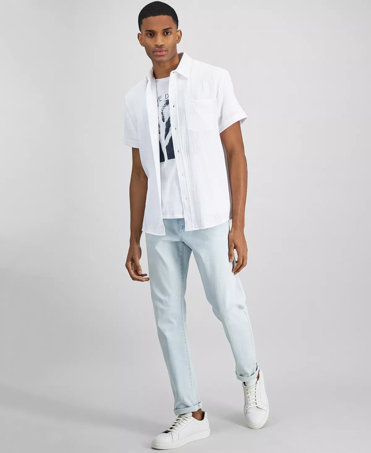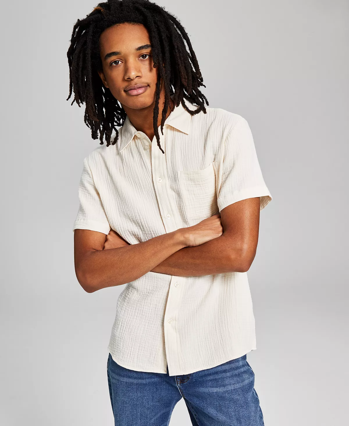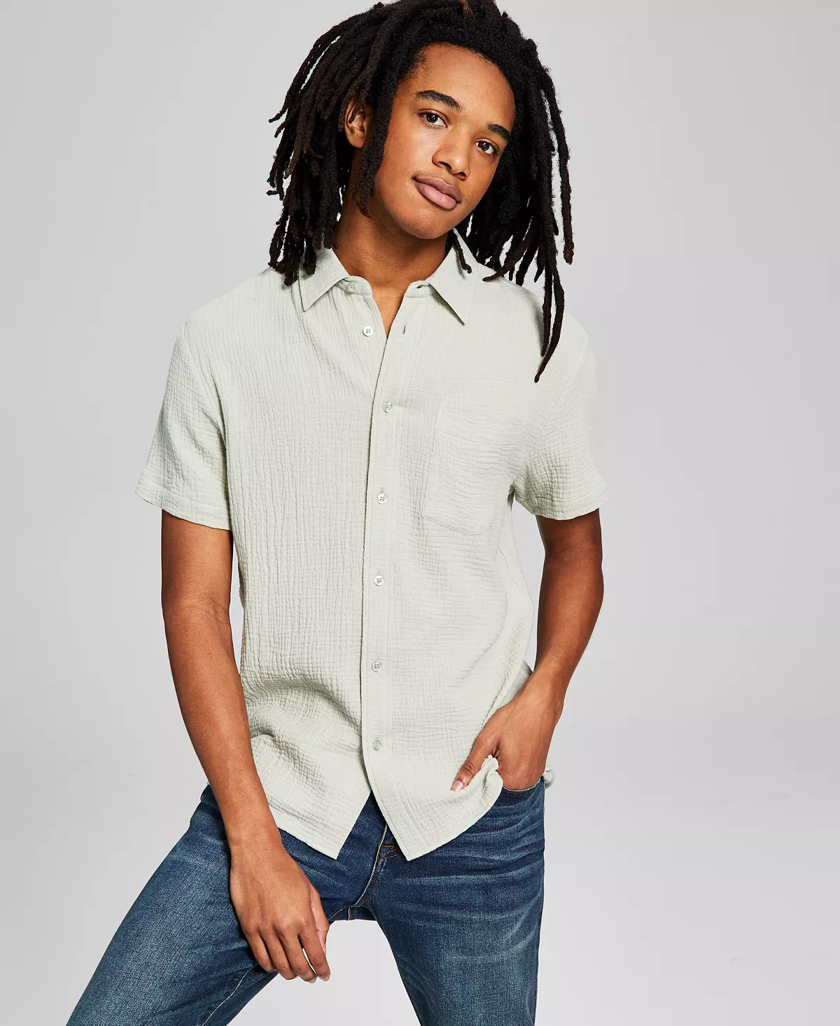 A great layer when you need a little extra texture, this seersucker shirt from And Now This is a must-have addition to your wardrobe.
