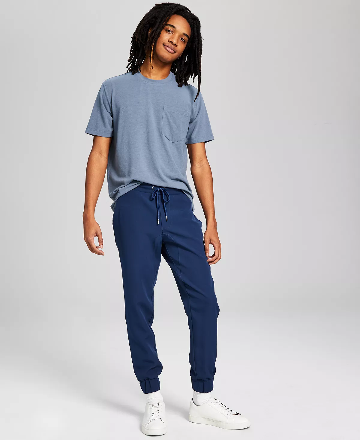 Head out in comfort with the tech stretch fabric of these versatile-styled jogger pants from And Now This.