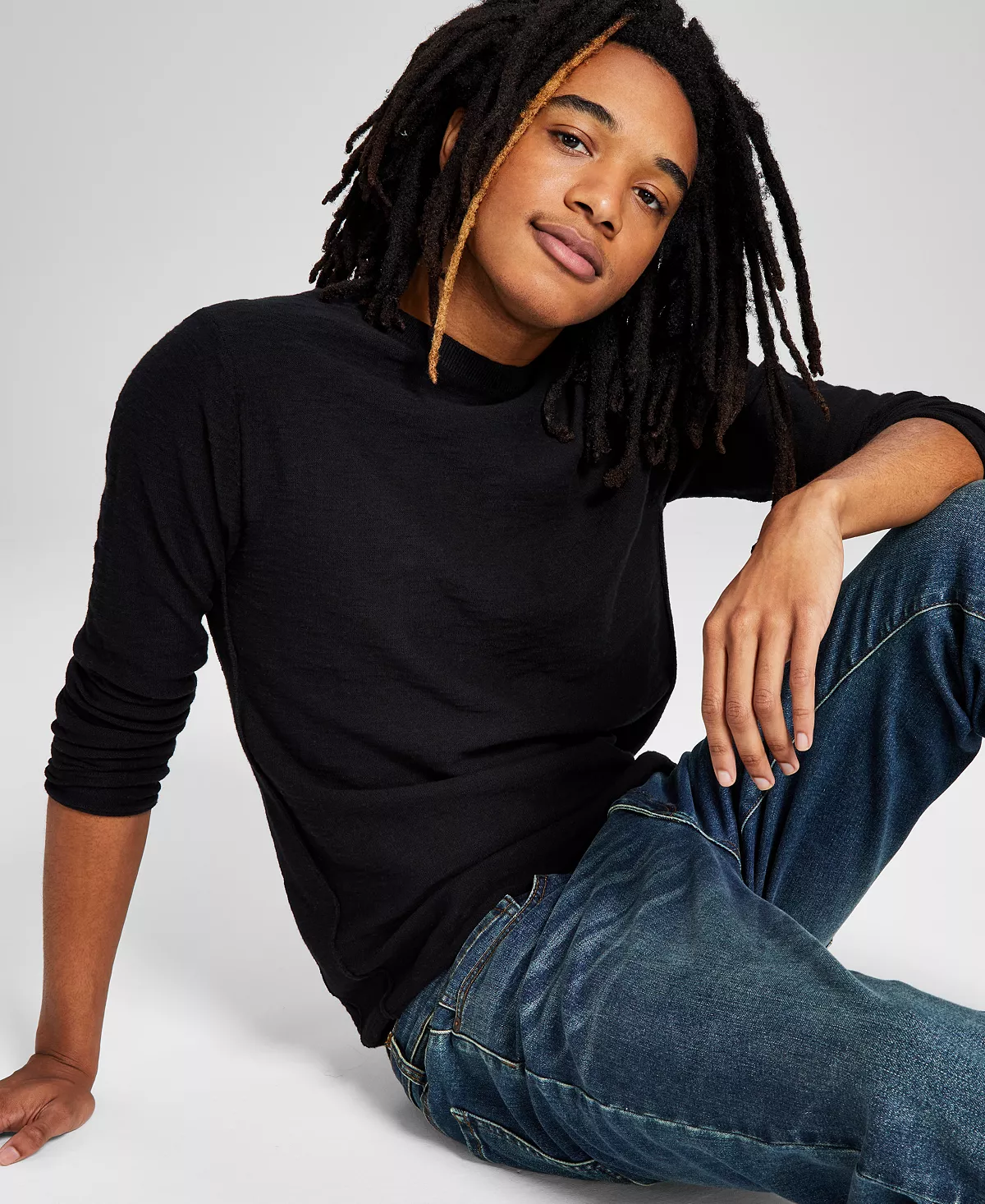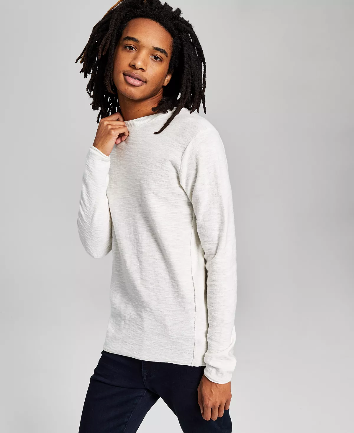 Fashioned with a rich texture and exposed side seams, this cotton-soft And Now This long-sleeve shirt can bring a touch of character to your casual and evening styles.