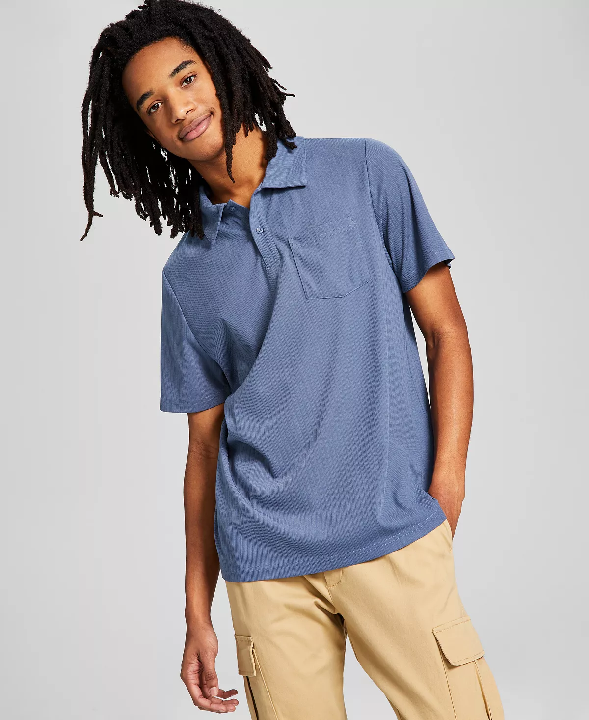 Textural, vertical ribbing adds some subtle, modern character to this handsome polo shirt from And Now This.