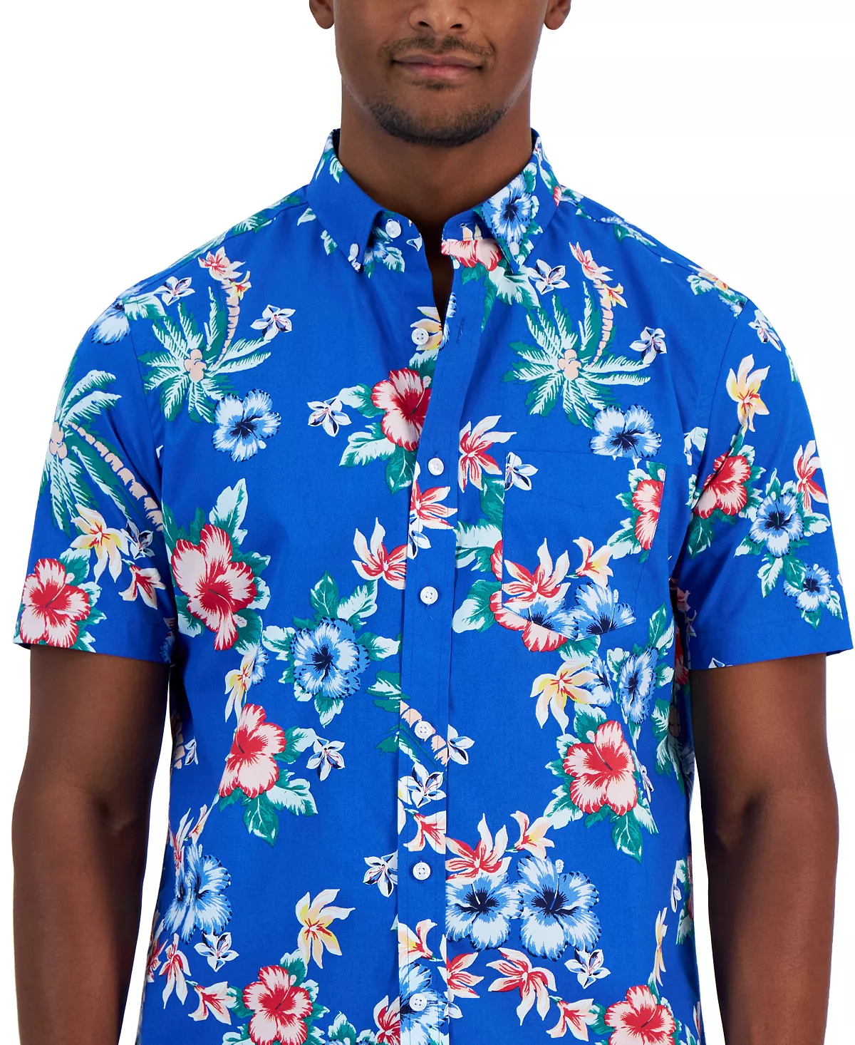 Enjoy the casual comfort of this short-sleeve shirt from Club Room, featuring button-down styling and a tropical print.