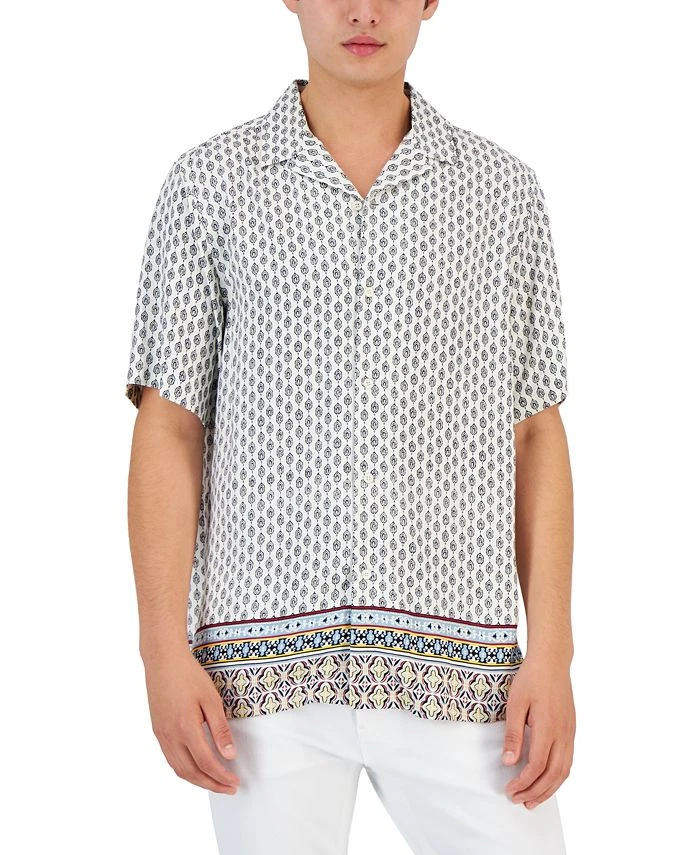Club Room elevates casual style with the subtle sophistication of this silk button-down, designed with a point collar and a modern geometric print.