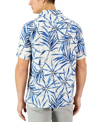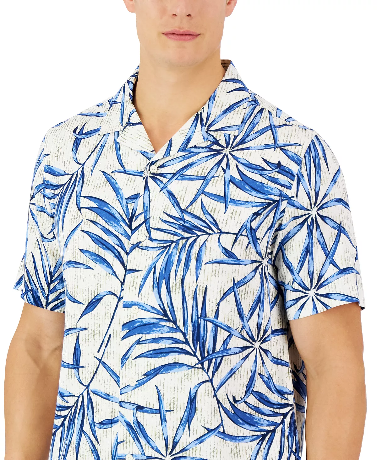 A short-sleeve shirt from Club Room, featuring classic button-down styling, allover tropical print and woven fabrication.