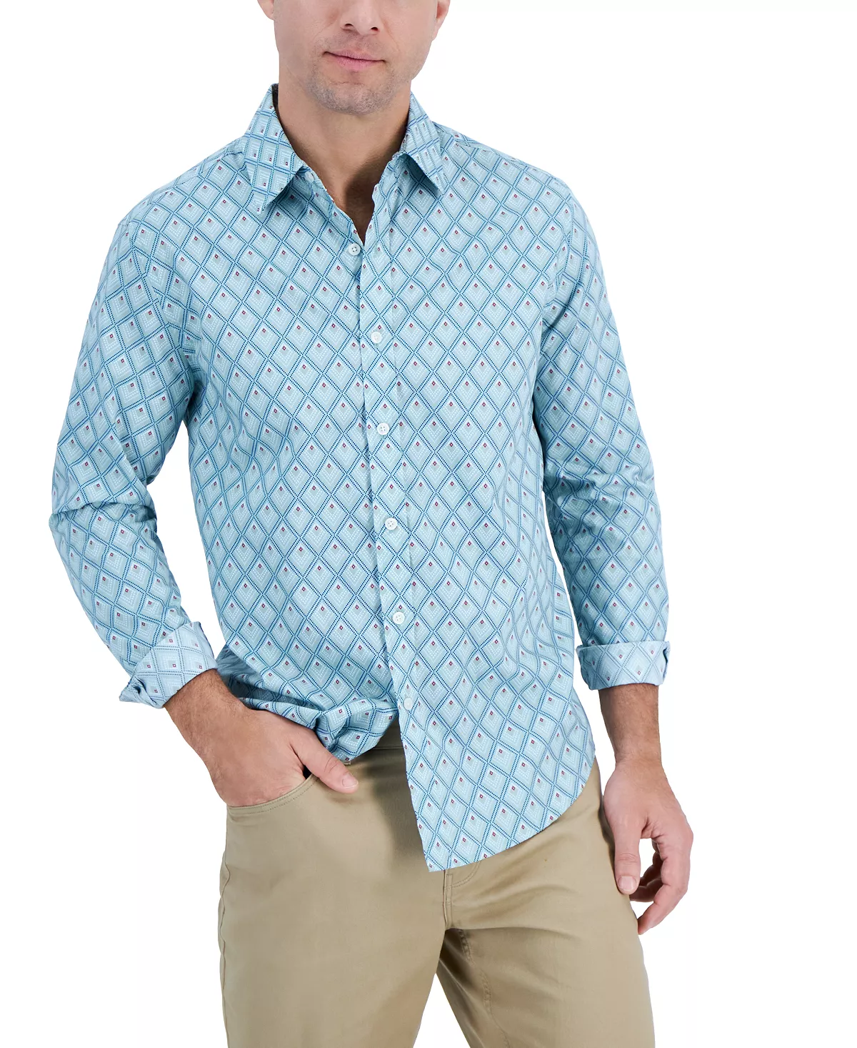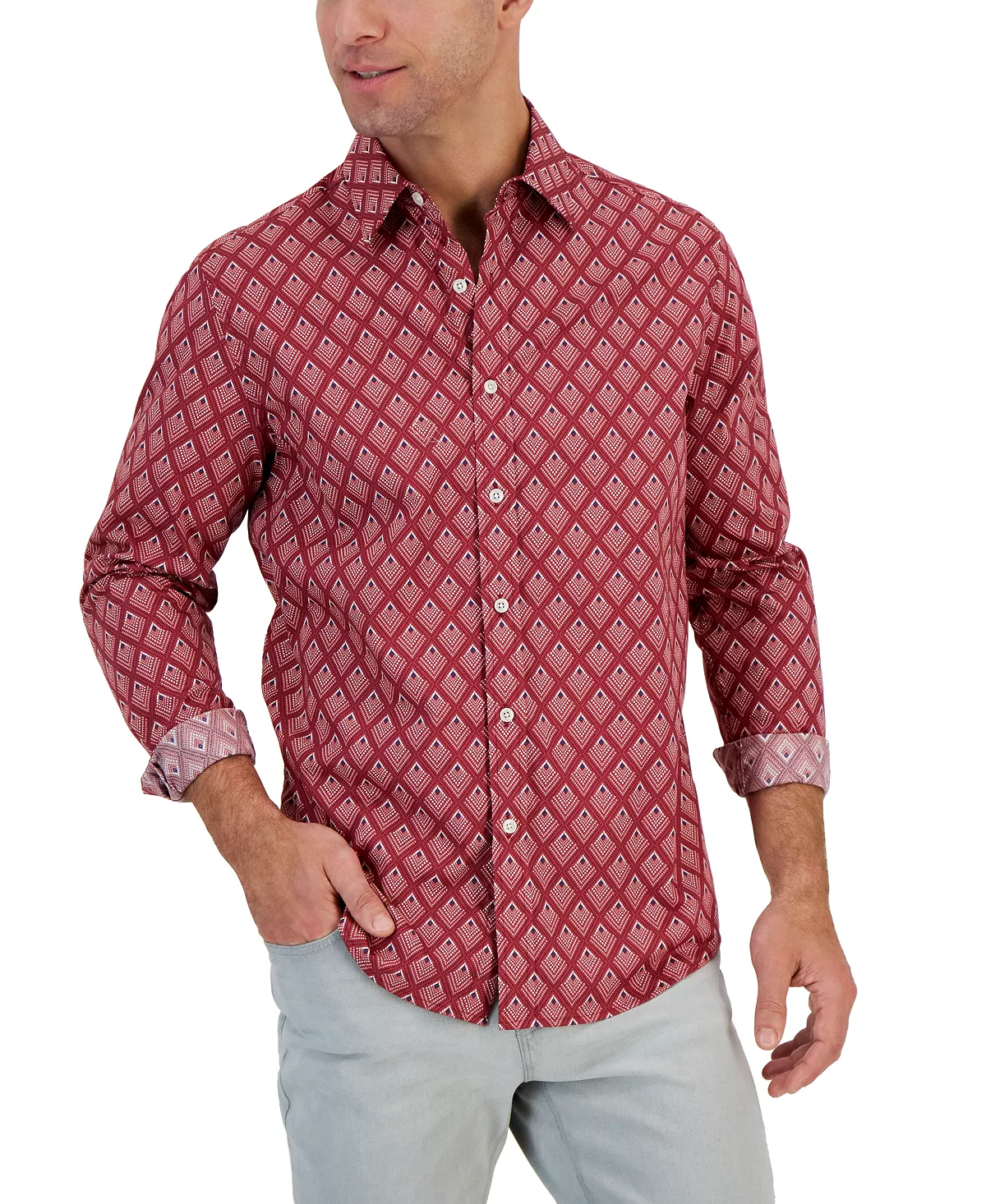 Club Room elevates your everyday look with the geometric print of this long-sleeve shirt, designed with classic button-down styling that pairs perfectly with jeans or khakis.