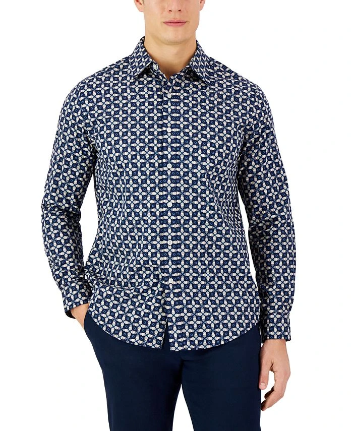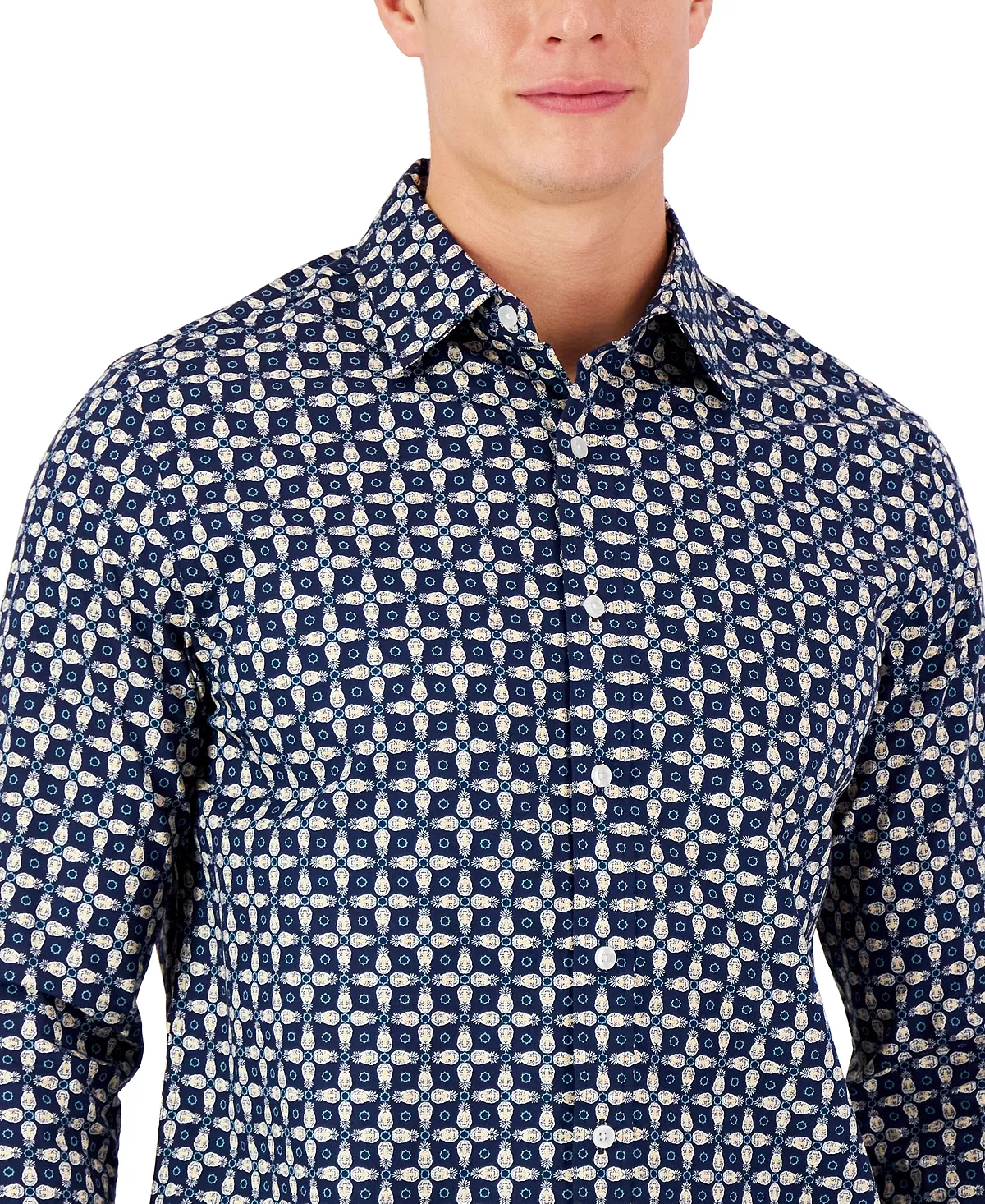 A long-sleeve shirt from Club Room, featuring classic button-down styling, a pineapple print and woven fabrication.