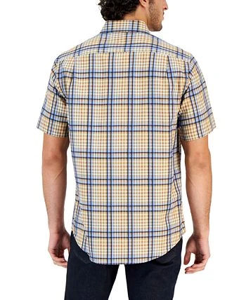 In soft cotton and with an updated plaid patterning, this Club Room short-sleeve button-up shirt offers both luxe comfort and a classic look.