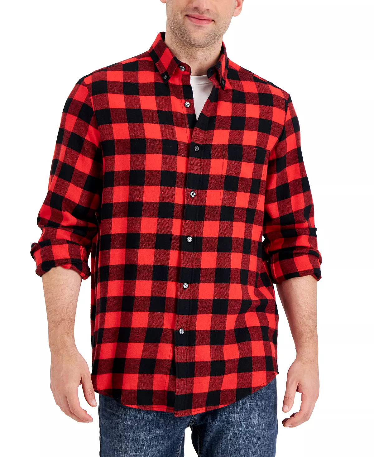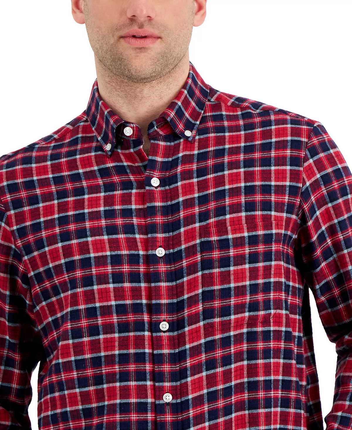Classic plaid patterns a soft cotton flannel to complete your cool-weather look with this handsome button-down from Club Room.