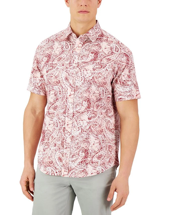 A short-sleeve shirt from Club Room, featuring classic button-down styling, allover plaid print and woven fabrication.