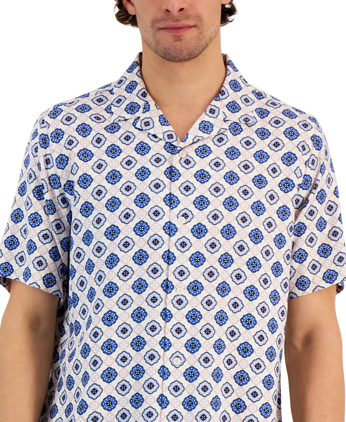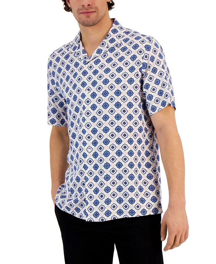 Designed with a cascading array of captivating medallions, this silky button-down from Club Room is an unbeatable choice when it’s time to relax with style.