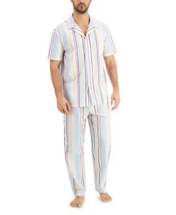 Colorful stripes add a stylish element to this pajama set from Club Room, while the cotton construction ensures extended comfort.