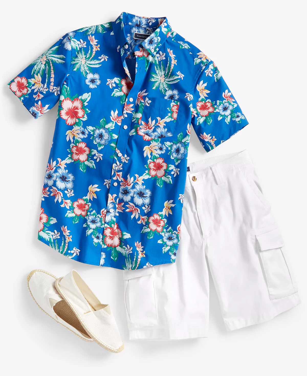 Enhance your laid-back, breezy-weather look with this combination poplin shirt and cargo shorts from Club Room.
