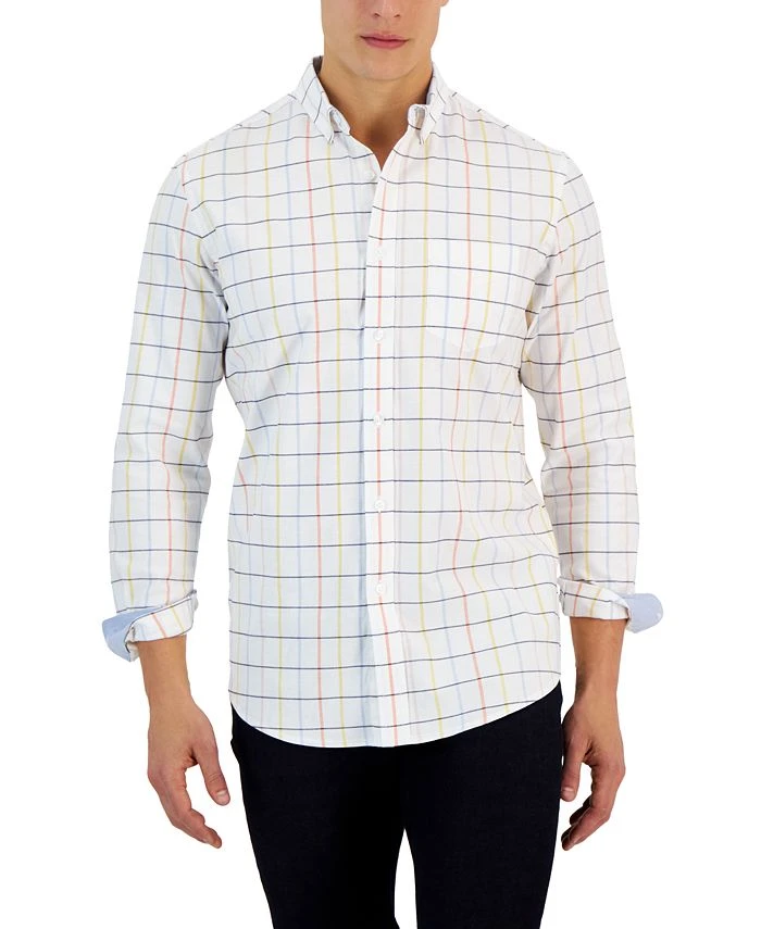Whether you wear it as a layer or let it shine on its own, this windowpane Oxford shirt from Club Room will take your look to the next level.