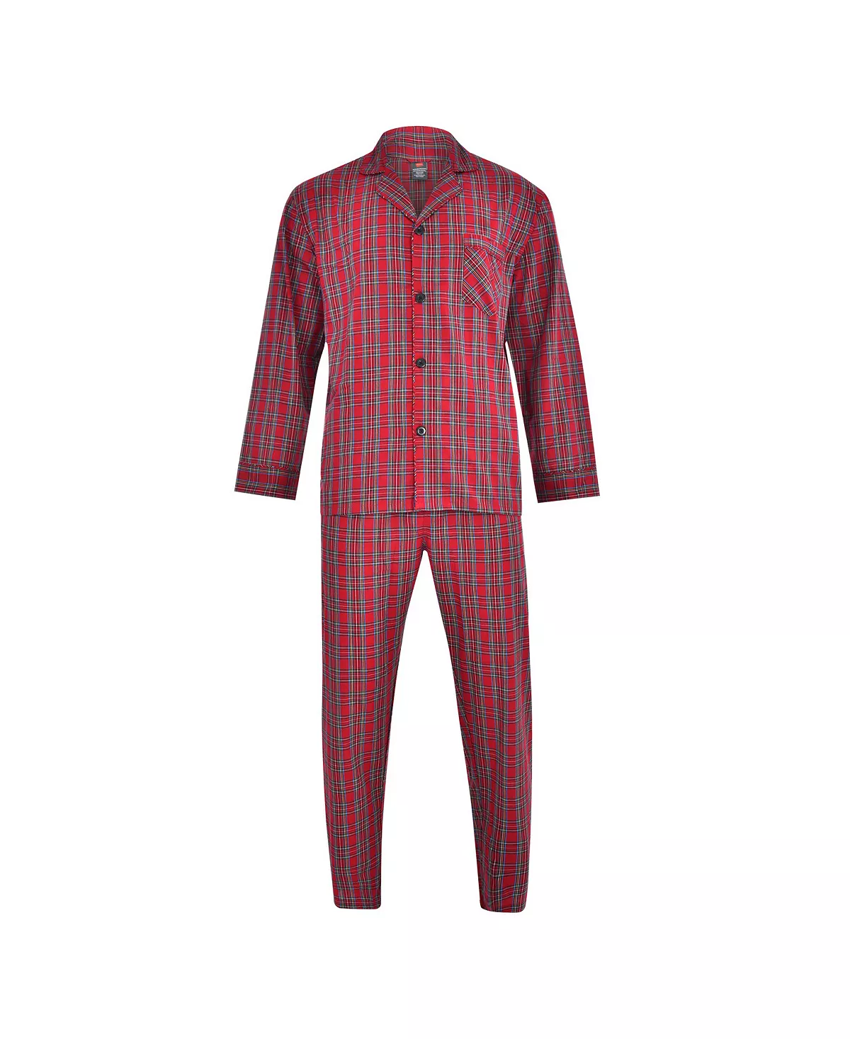This Hanes Classic Pajama set is a nighttime necessity. Made with a soft cotton or polyester broadcloth, This set includes a comfortable long-sleeve top with a 4 button front closure and a front chest pocket. The stretchy elastic waistband and the 2-button snap adjustable.