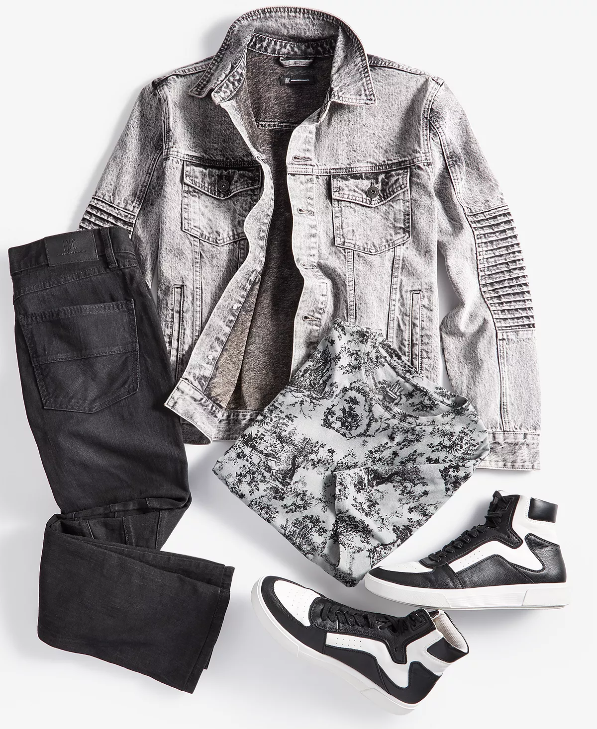 Give your street style a fresh modern feel with the cool moto jacket, graphic T-shirt & slim straight-fit jeans showcased in this laid-back look from INC International Concepts.