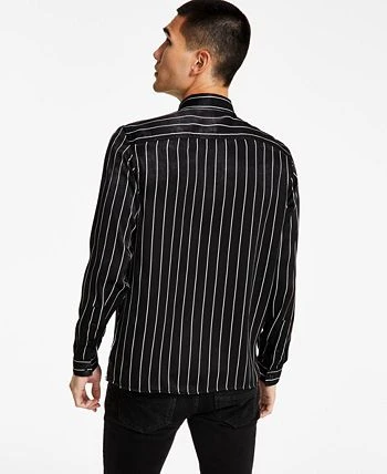 Styled in shimmering satin finished with crisp stripes, this shirt form INC International Concepts levels up your laid-back look.