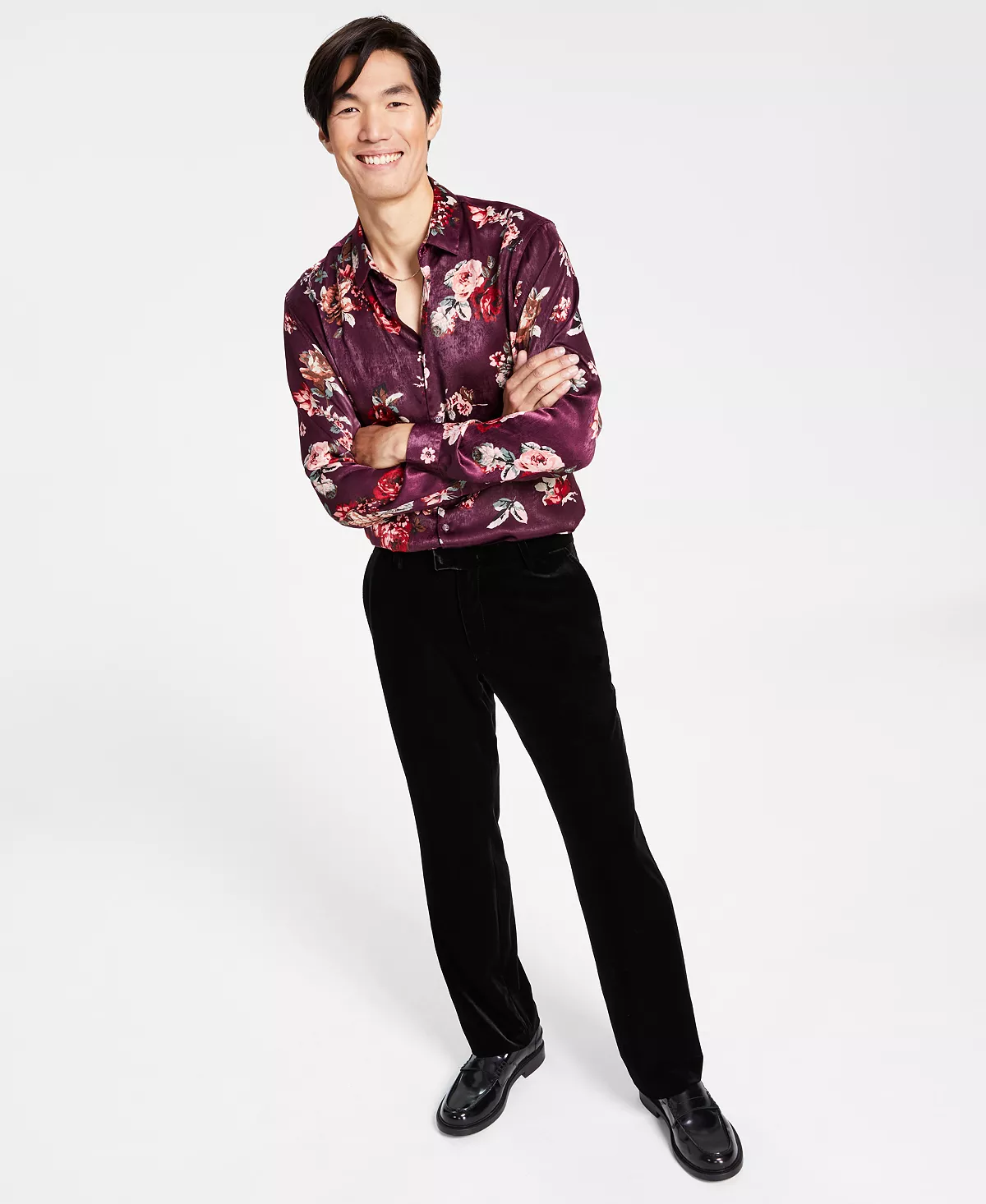 Add rich texture and shimmering style to your sophisticated look with the velvet fabric of these Owen slim-fit suit pants from INC International Concepts.