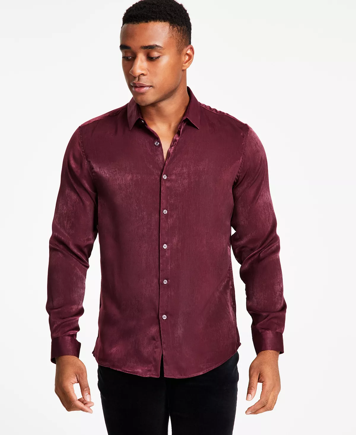Add some subtle shine to your street style with the shimmering satin of this button-down shirt from INC International Concepts.