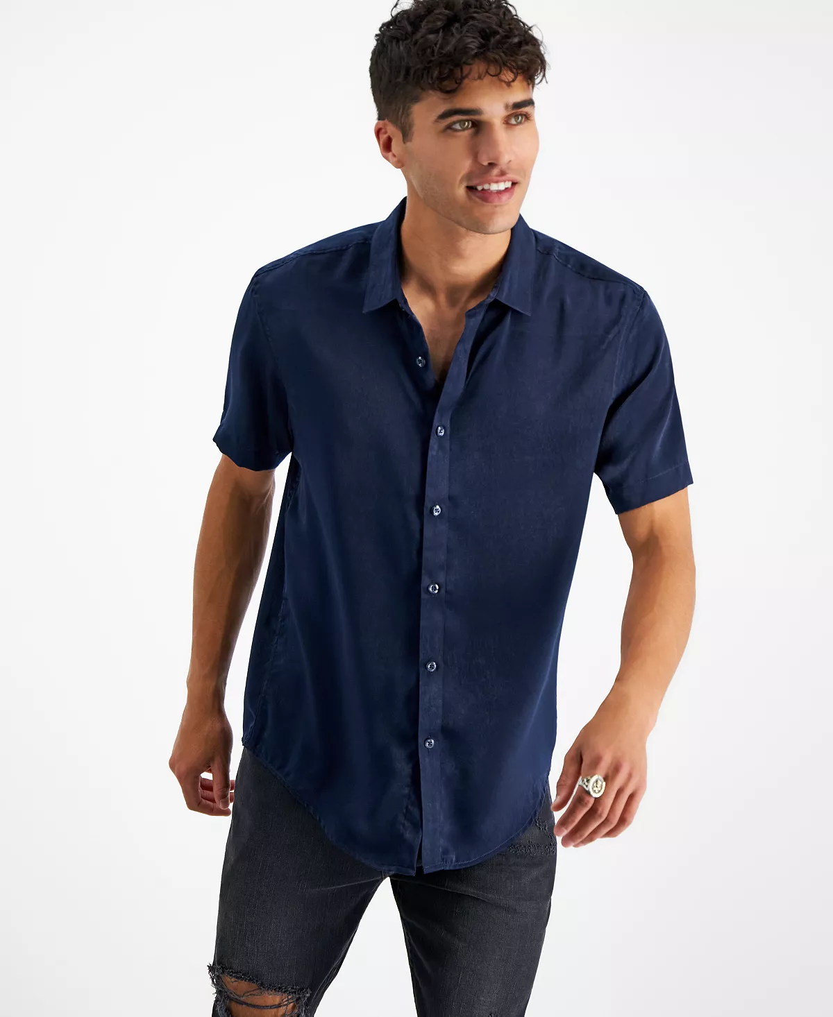 Add some subtle shine to your street style with the shimmering satin of this button-down shirt from INC International Concepts.