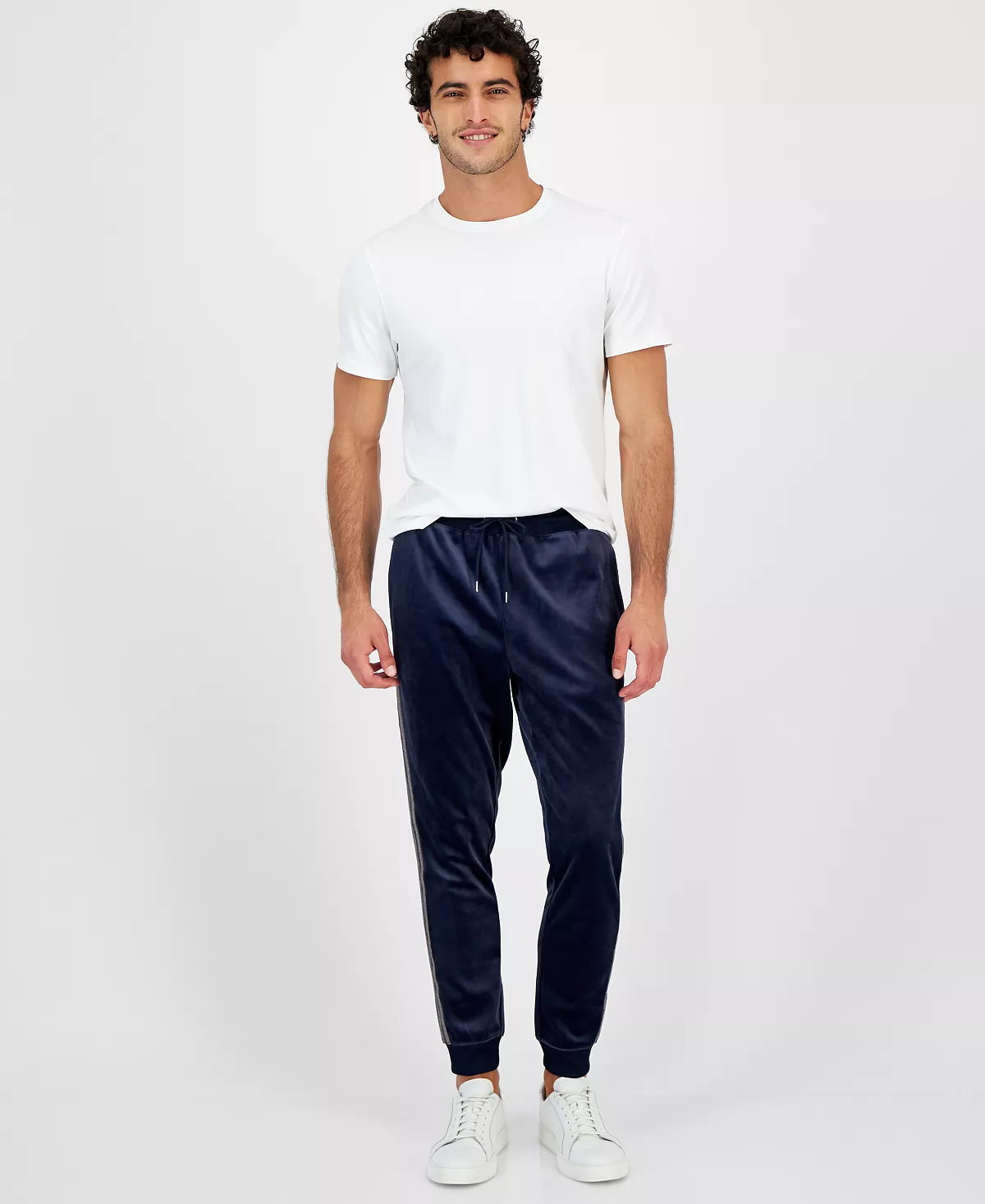 Let your laid-back style shine with the shimmering velour and sparkling sides stripes of these incredibly comfortable joggers from I.N.C. International Concepts®.