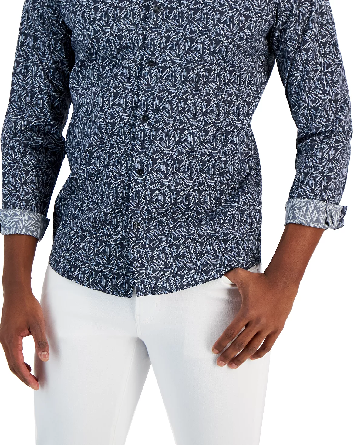 Through its tailored cut and simple but handsome sketch leaf print, this long-sleeve button-up shirt by Michael Kors is all you need to put a modern, alluring face on your day and evening styles.