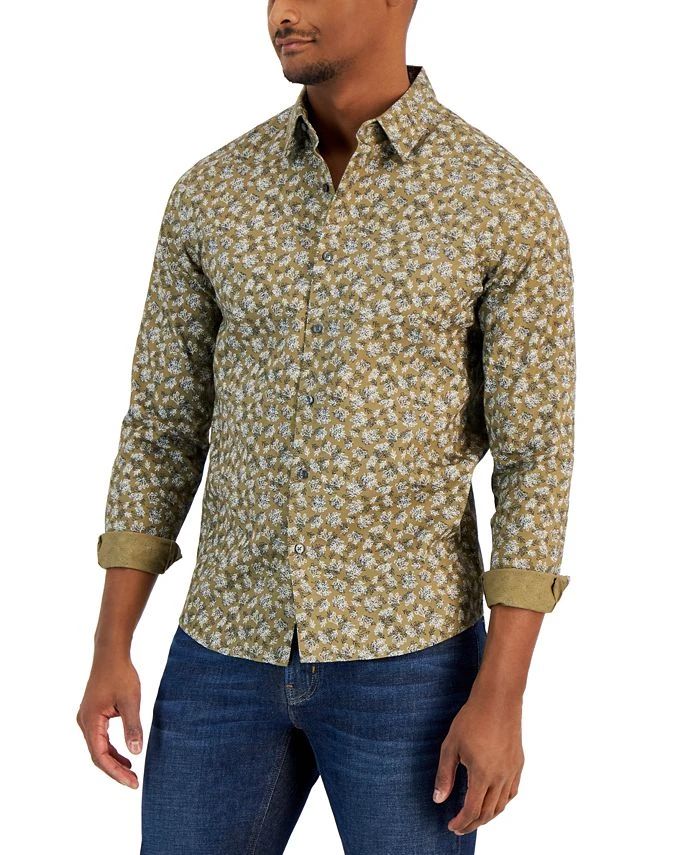 Display a distinctly modern look in comfort through the crisp floral print and stretch fabric of this tailored long-sleeve button-up shirt by Michael Kors.