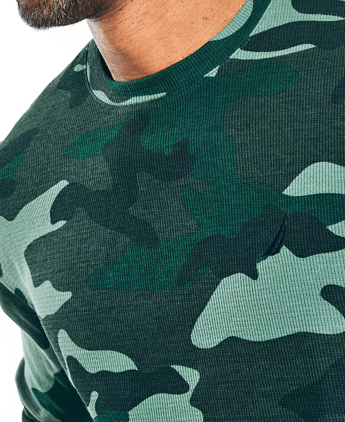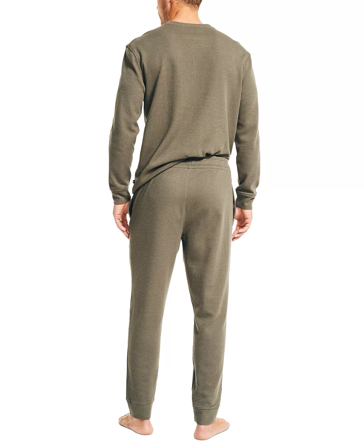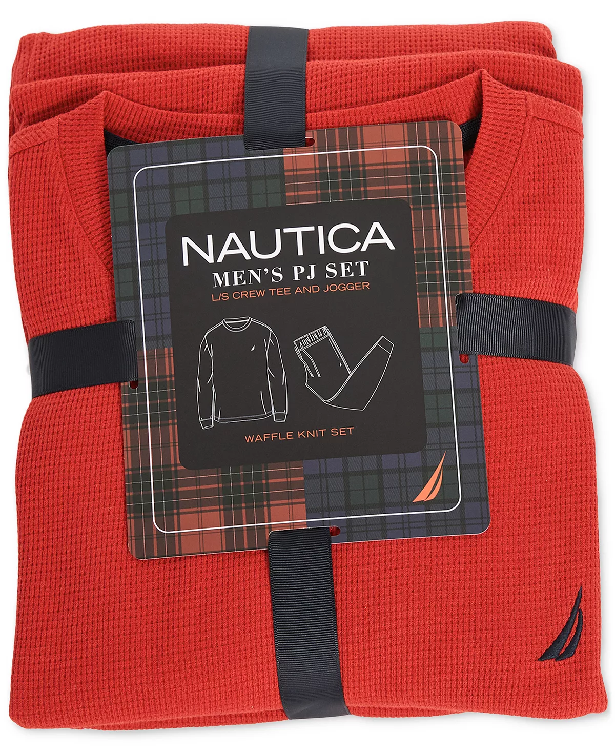 End the day on a high note with this Nautica pajama set made from warm and cozy waffle-texture cotton-knit. Cut for a vintage fit, this set features a long sleeve t-shirt and matching elastic-drawstring pant.