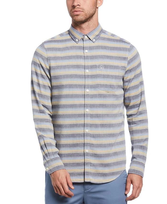 From casual days to evenings out with friends, this men’s button-down from Original Penguin has you covered. Double weave fabrication creates a heavier durable material that stands up to regular wear. The slim fit long sleeve top has added stretch, allowing you to move comfortably. An allover faded striped pattern provides a fresh look that’s sure to get attention for all the right reasons.