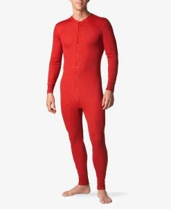 Stanfield’s merino wool blend 2 layer onesie provides maximum overall warmth and has no itch factor. Air trapped between layers is a great insulator.