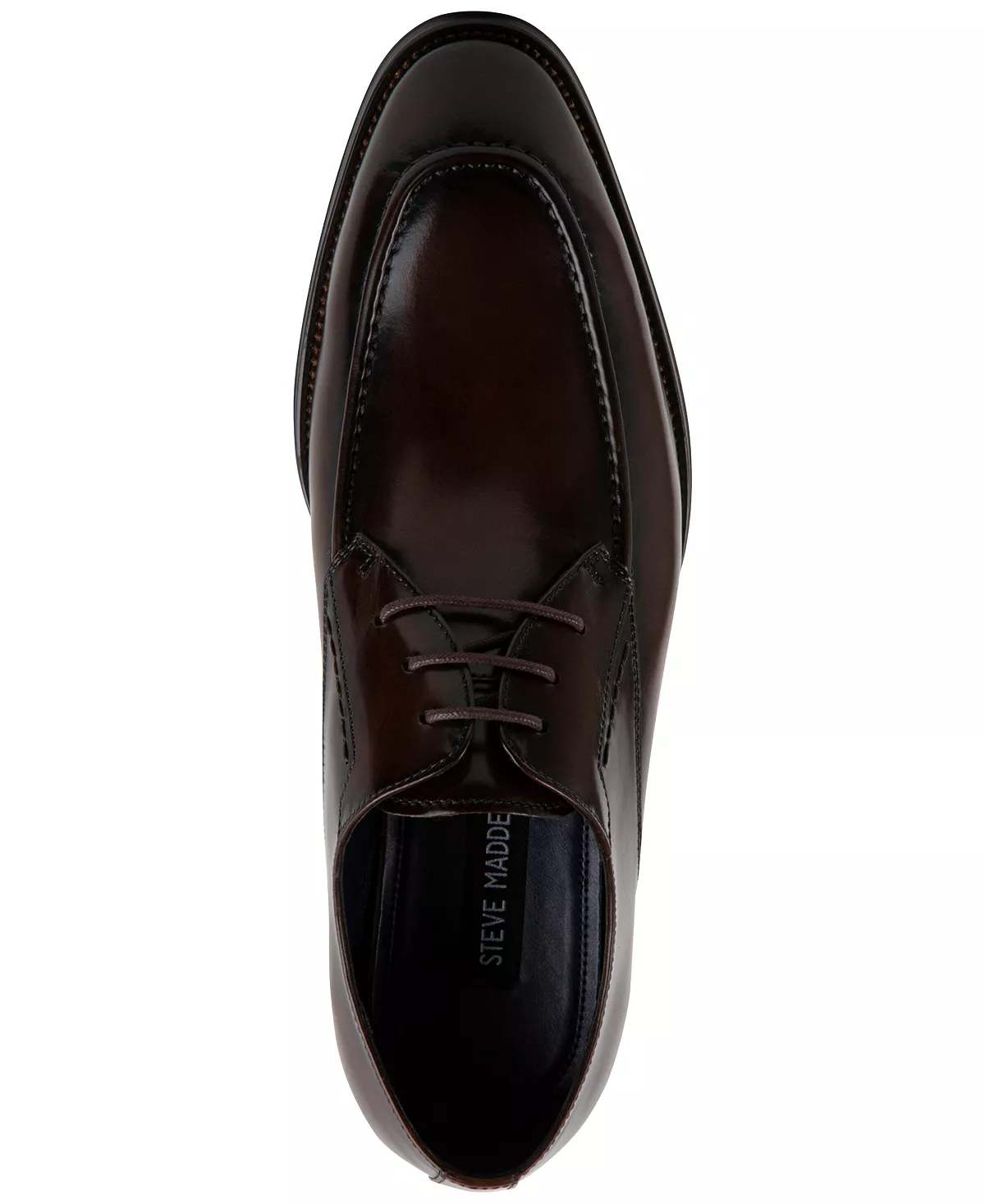 Modern elegance. This Steve Madden dress shoe offers to update your business attire with a smooth waxy leather upper and forward-fashion almond shaped moc-toe.