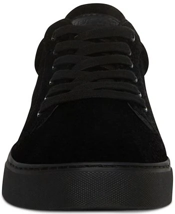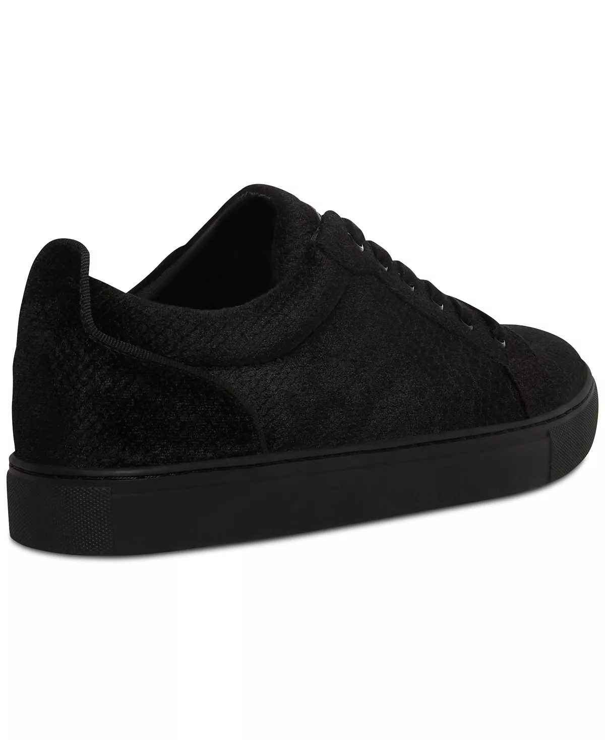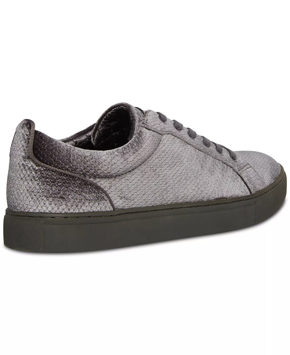 Steve Madden’s Yali sneaker features an all over velvet snake embossed upper and classic construction with metal eyelets and a low profile.