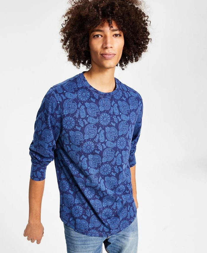 A tonal bandana print plays out across this long-sleeve T-shirt from Sun + Stone, offering a look for your wardrobe that is both bold and classic.
