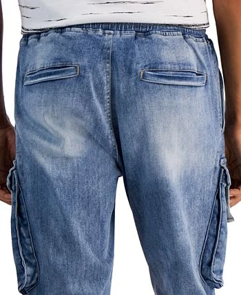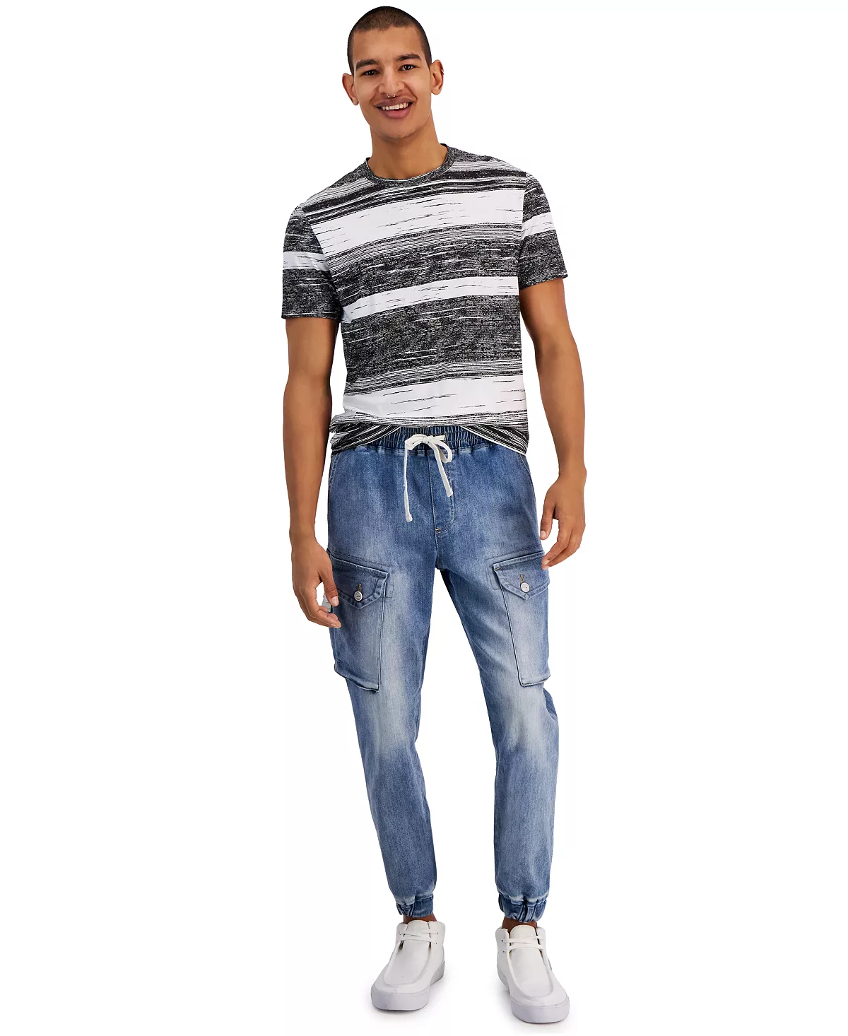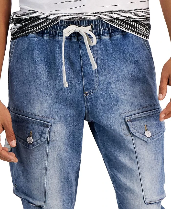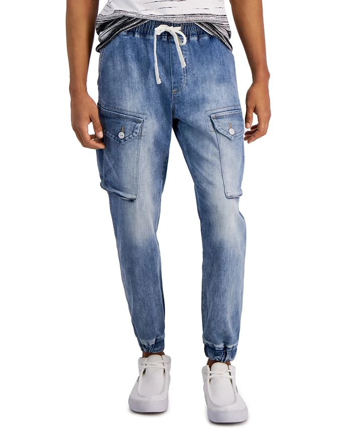 Sun + Stone delivers casually cool style with these tapered jogger pants, designed with a denim wash and faded details.