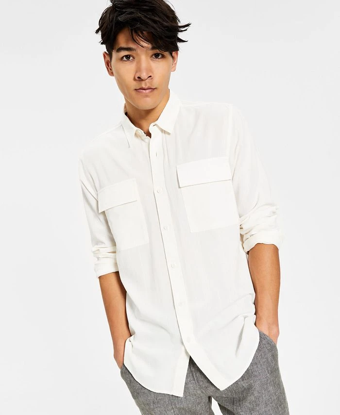 Be ready for warm days in the sun with the rich fabric and textural stripes of Sun + Stone’s Sandro long-sleeve shirt.