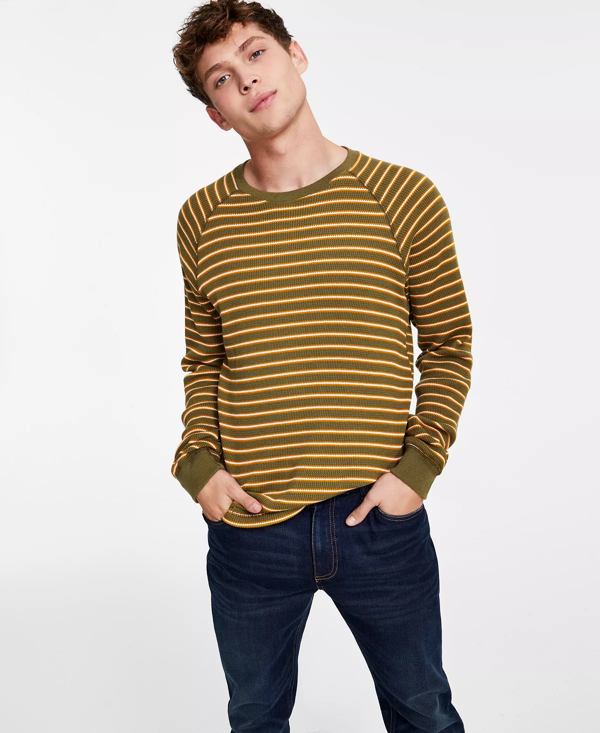 Sun + Stone sets the standard for all-day comfort and cool style with the classic fit of this crewneck T-shirt, showcasing horizontal stripes.