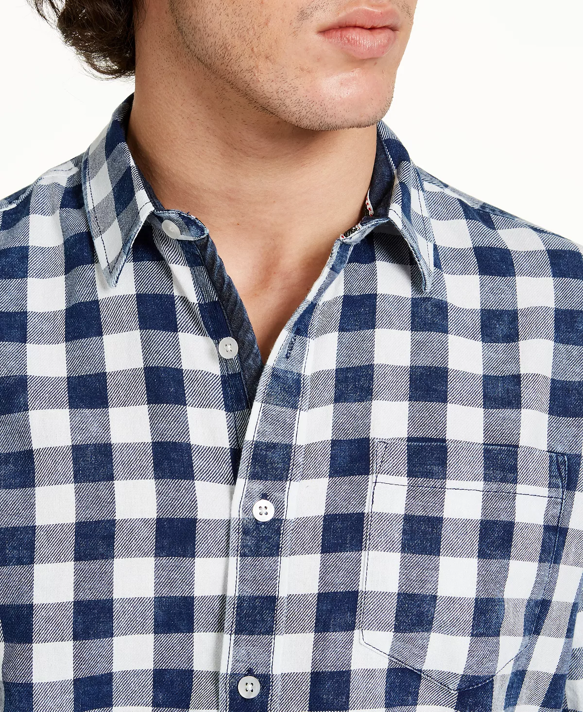 Update your afterwork style with both a timeless look and exceptional comfort through the crisp check and cotton finish of the Washed Banarama button-up shirt by SUN + STONE.