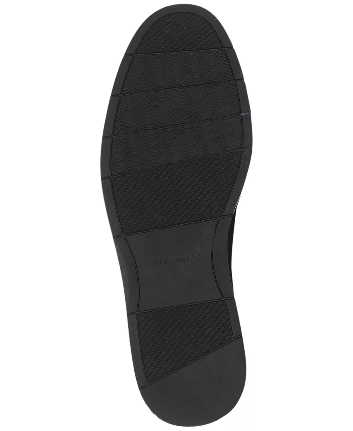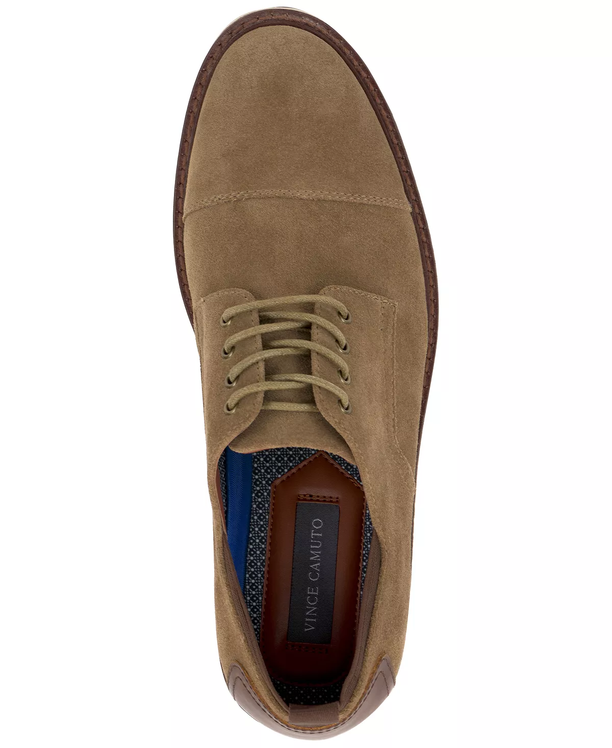 A slick contrast outsole lends some casual style to the dressy look of the cap-toe leather Edom dress shoe by Vince Camuto.